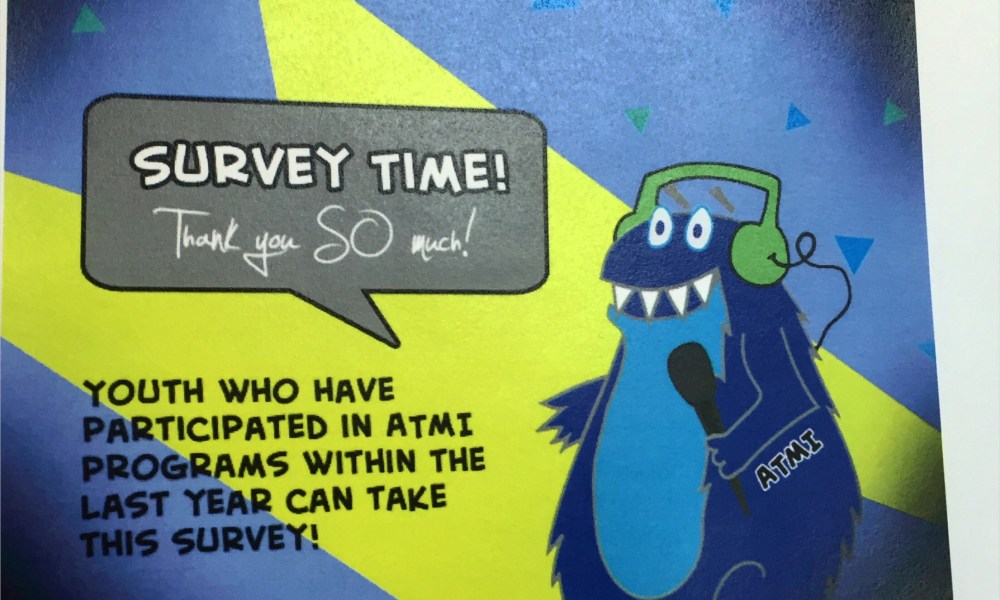 Youth who participate in ATMI programs are invited to take this survey! Thanks for helping, you guys!