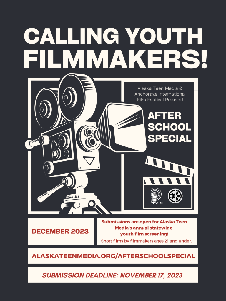 Then join us for the in-person screening of the selected films as part of the 23rd Anchorage International Film Festival. The festival takes place December 1st through the 9th. The exact day and time of After School Special is TBD.