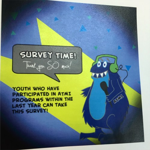 Youth who participate in ATMI programs are invited to take this survey! Thanks for helping, you guys!